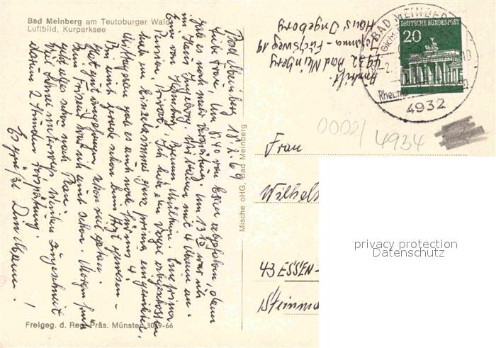 72697764 alte Postkarte Meinberg Bad Luftaufnahme Kurparksee postalisch gelaufen Erhaltung siehe scans [KathaD79] KatCode: 11110005766032