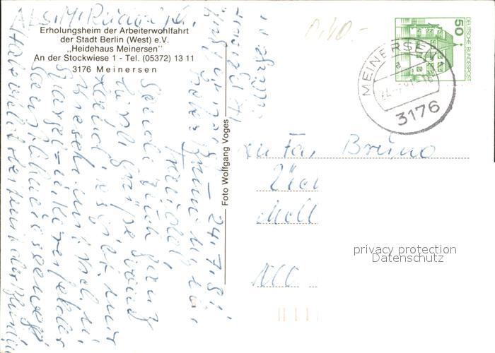 72108076 alte Postkarte Meinersen Erholungsheim der Arbeiterwohlfahrt Heidehaus Meinersen postalisch gelaufen Erhaltung siehe scans KatCode: 11110003151017