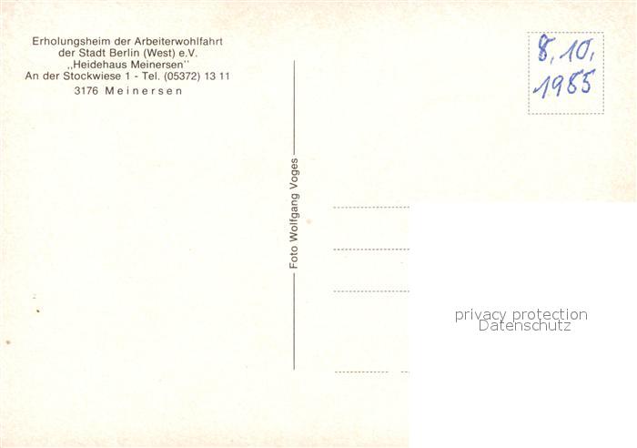 73211751 Meinersen Erholungsheim der AWO der Stadt Berlin Heidehaus Meinersen postalisch nicht gelaufen Erhaltung siehe scans [WerneD78] KatCode: 11110003151017