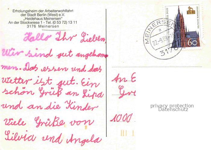 74091416 alte Postkarte Meinersen Gifhorn Niedersachsen Heidehaus Meinersen der AWO Berlin Fliegeraufnahme postalisch gelaufen Erhaltung siehe scans [WerneD78] KatCode: 11110003151017