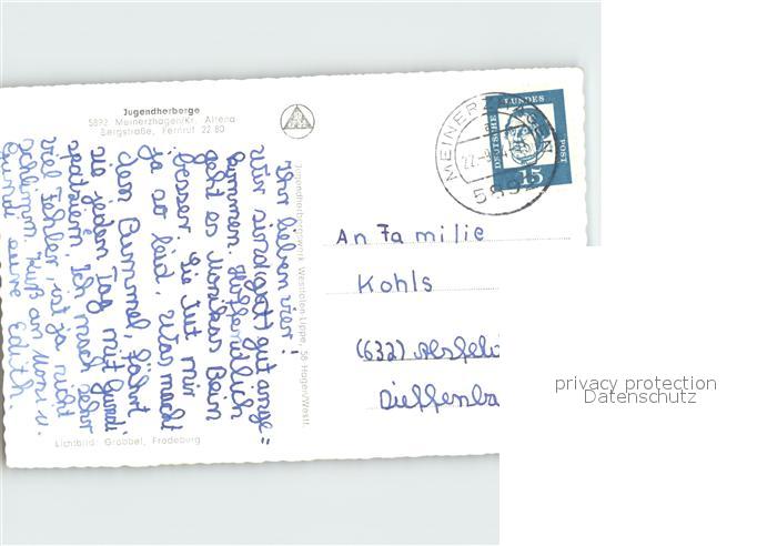 72109366 alte Postkarte Meinerzhagen Jugendherberge postalisch gelaufen Erhaltung siehe scans KatCode: 11110005962036