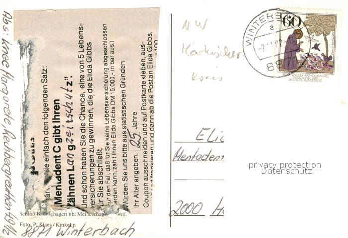 73020202 alte Postkarte Meinerzhagen Schloss Badinghagen postalisch gelaufen Erhaltung siehe scans [NatalD47] KatCode: 11110005962036