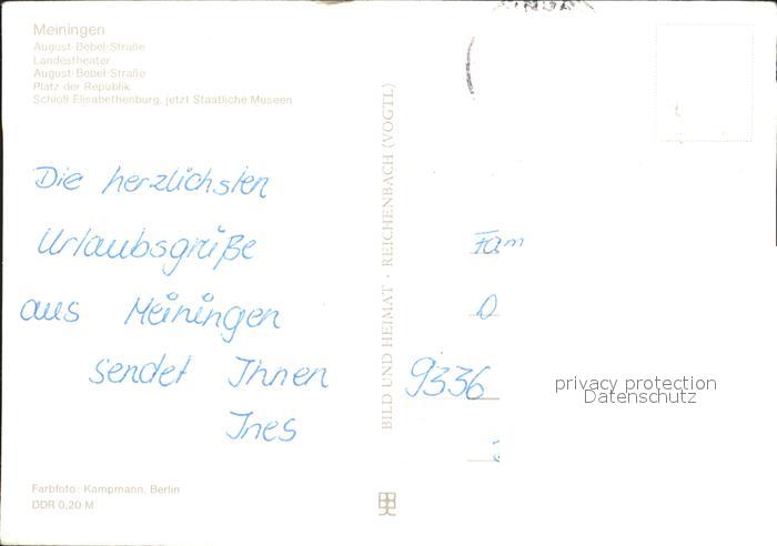 72382871 alte Postkarte Meiningen Thueringen August Begel Strasse Landestheater Schloss postalisch gelaufen Erhaltung siehe scans KatCode: 11110016066042