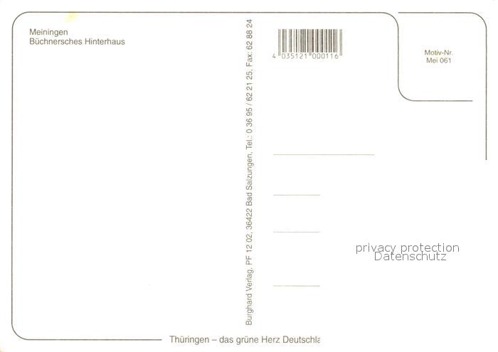 73179134 Meiningen Thueringen Buechnersches Hinterhaus Fachwerkhaus Historisches Gebaeude postalisch nicht gelaufen Erhaltung siehe scans [FriedD77] KatCode: 11110016066042