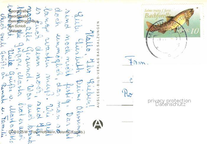 72859735 alte Postkarte Meiningen Thueringen Georgstrasse Henneberger Haus Schloss Theater postalisch gelaufen Erhaltung siehe scans [NatalD47] KatCode: 11110016066042
