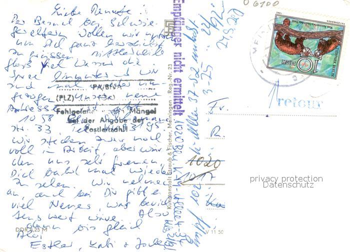 72940433 alte Postkarte Meiningen Thueringen Heinrichsbrunnen Theater Platz der Republik postalisch gelaufen Erhaltung siehe scans [NatalD47] KatCode: 11110016066042