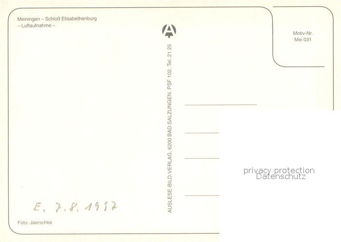 73617030 Meiningen Thueringen Schloss Elisabethenburg Fliegeraufnahme postalisch nicht gelaufen Erhaltung siehe scans [WerneD78] KatCode: 11110016066042