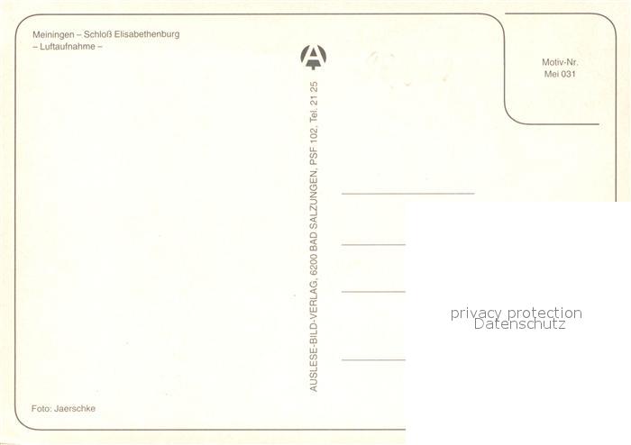 73103233 Meiningen Thueringen Schloss Elisabethenburg Fliegeraufnahme postalisch nicht gelaufen Erhaltung siehe scans [WerneD78] KatCode: 11110016066042
