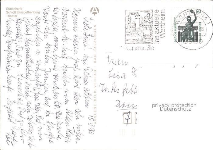72289606 alte Postkarte Meiningen Thueringen Schloss Elisabethenburg Stadtkirche Theater postalisch gelaufen Erhaltung siehe scans KatCode: 11110016066042
