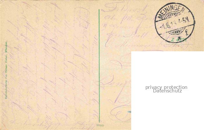 74127038 alte Postkarte Meiningen Thueringen Schloss Landsberg Marktplatz Bruecke Meierei Palais Theater Schule Englischer Garten Georgstrasse Panorama Feldpost postalisch gelaufen Erhaltung siehe scans [FriedD77] KatCode: 11110016066042
