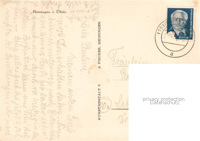 73712226 alte Postkarte Meiningen Thueringen Stadtpanorama postalisch gelaufen Erhaltung siehe scans [FriedD77] KatCode: 11110016066042