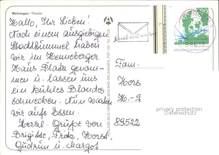 72334078 alte Postkarte Meiningen Thueringen Theater postalisch gelaufen Erhaltung siehe scans KatCode: 11110016066042