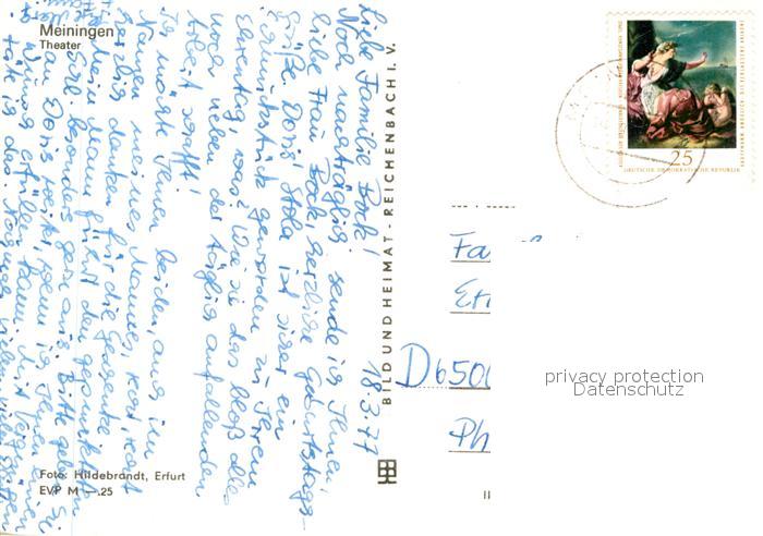 72948125 alte Postkarte Meiningen Thueringen Theater postalisch gelaufen Erhaltung siehe scans [FriedD77] KatCode: 11110016066042