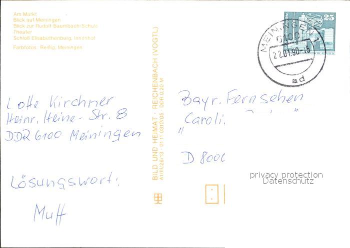72324641 alte Postkarte Meiningen Thueringen Theater Schloss Elisabethenburg postalisch gelaufen Erhaltung siehe scans KatCode: 11110016066042