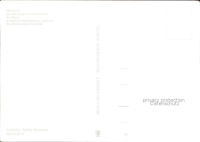 72261046 Meiningen Thueringen uebersicht Springbrunnen Goethepark Markt Schloss Elisabethenburg Rudolf Baumbach Schule postalisch nicht gelaufen Erhaltung siehe scans KatCode: 11110016066042
