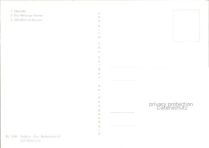 72371473 Meiningen Thueringen uebersicht Theater Schlosshof mit Brunnen postalisch nicht gelaufen Erhaltung siehe scans KatCode: 11110016066042