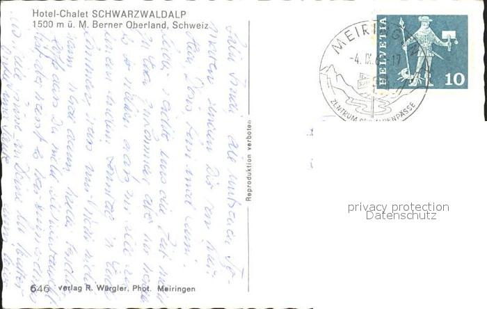 12056972 alte Postkarte Meiringen BE Hotel Chalet Schwarzwaldalp postalisch gelaufen KatCode: 11470060210588