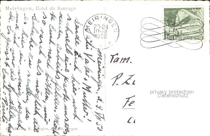 12055558 alte Postkarte Meiringen BE Hotel du Sauvage postalisch gelaufen Erhaltung siehe scans KatCode: 11470060210588