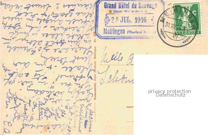 34146150 alte Postkarte Meiringen Oberhasli BE Panorama postalisch gelaufen Fliegeraufnahme Erhaltung siehe scans [FriedD77] KatCode: 11470060210588