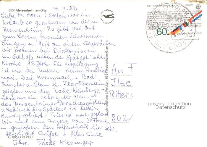 72321540 alte Postkarte Meisenheim Glan am Glan postalisch gelaufen Erhaltung siehe scans KatCode: 11110007133065