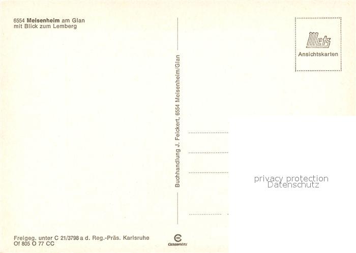 73257562 Meisenheim Glan Blick zum Lemberg Fliegeraufnahme postalisch nicht gelaufen Erhaltung siehe scans [FriedD77] KatCode: 11110007133065