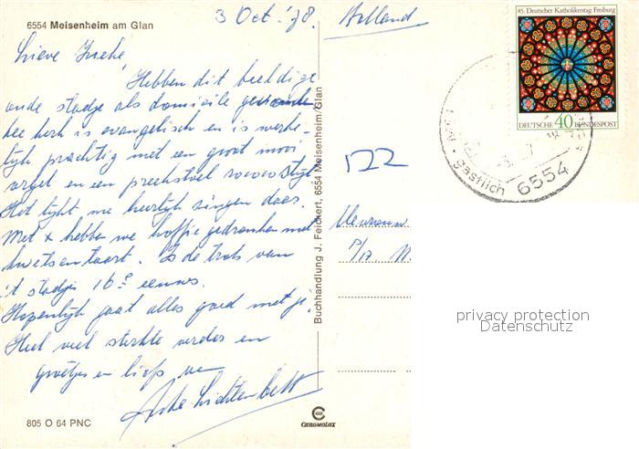 73257558 alte Postkarte Meisenheim Glan Stadtpanorama Altstadt Fachwerkhaeuser Brunnen Turm postalisch gelaufen Erhaltung siehe scans [FriedD77] KatCode: 11110007133065
