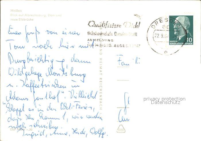72402238 alte Postkarte Meissen Elbe Sachsen Albrechtsburg Dom und neue Elbbruecke postalisch gelaufen Erhaltung siehe scans KatCode: 11110014280240