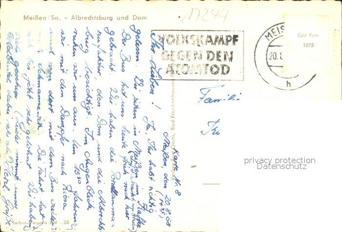 72176830 alte Postkarte Meissen Elbe Sachsen Albrechtsburg und Dom postalisch gelaufen Erhaltung siehe scans KatCode: 11110014280240