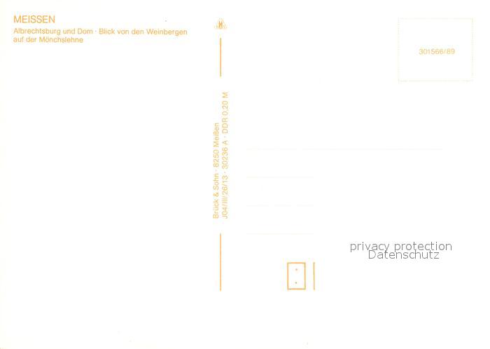72928276 Meissen Elbe Sachsen Albrechtsburg und Dom Blick von den Weinbergen auf der Moenchslehne postalisch nicht gelaufen Erhaltung siehe scans [FriedD77] KatCode: 11110014280240