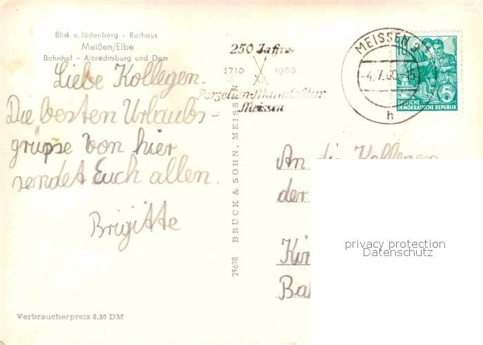 72705107 alte Postkarte Meissen Elbe Sachsen Bahnhof Albrechtsburg Dom postalisch gelaufen Erhaltung siehe scans [AndreD76] KatCode: 11110014280240