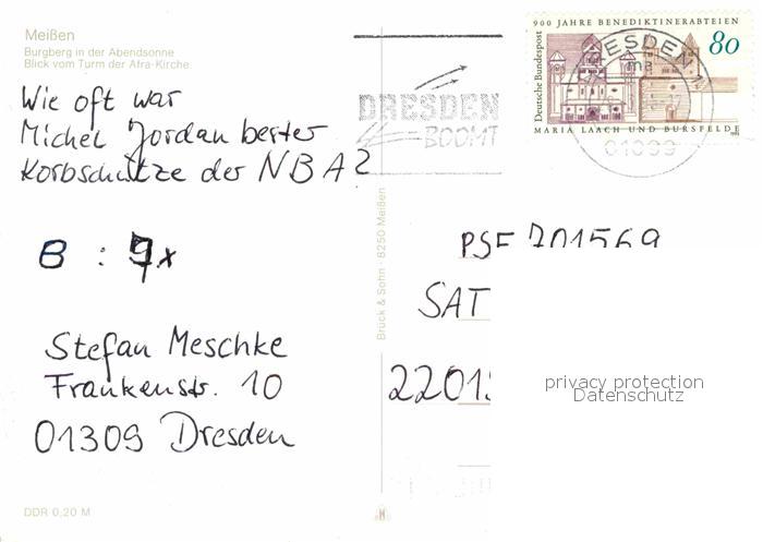 72906777 alte Postkarte Meissen Elbe Sachsen Burgberg Afra Kirche postalisch gelaufen Erhaltung siehe scans [NatalD47] KatCode: 11110014280240