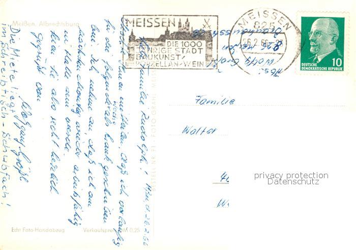 73043750 alte Postkarte Meissen Elbe Sachsen Die Albrechtsburg postalisch gelaufen Erhaltung siehe scans [WerneD78] KatCode: 11110014280240