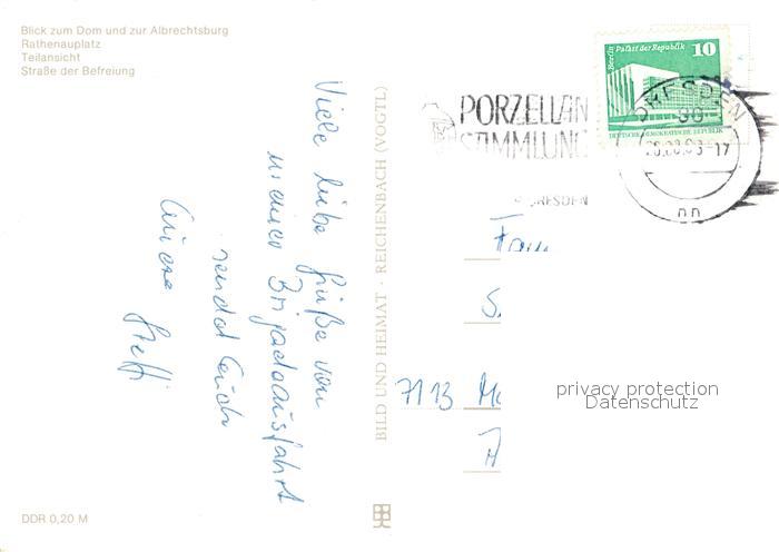 73041095 alte Postkarte Meissen Elbe Sachsen Dom Albrechtsburg Rathenauplatz Stadtblick Strasse der Befreiung postalisch gelaufen Erhaltung siehe scans [WerneD78] KatCode: 11110014280240