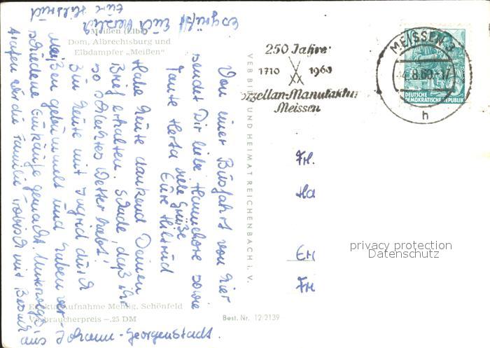 72119125 alte Postkarte Meissen Elbe Sachsen Dom Albrechtsburg und Elbdampfer Meissen postalisch gelaufen Erhaltung siehe scans KatCode: 11110014280240