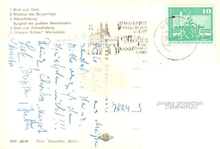 73033680 alte Postkarte Meissen Elbe Sachsen Dom Mitteltor Burganlage Albrechtsburg Vinzenz Richter Weinstuben postalisch gelaufen Erhaltung siehe scans [KathaD81] KatCode: 11110014280240