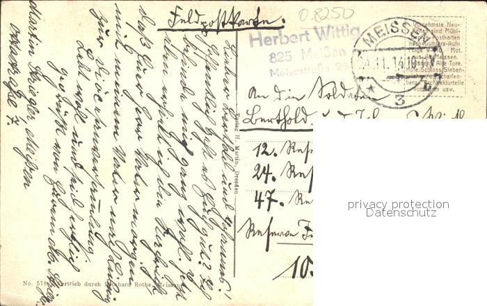 42403751 alte Postkarte Meissen Elbe Sachsen Dom und Kgl Albrechtsburg Weinlaub postalisch gelaufen Feldpost Erhaltung siehe scans KatCode: 11110014280240