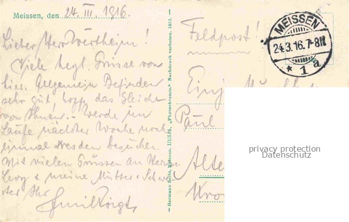 74030595 alte Postkarte MEIssEN Elbe Sachsen Domtuerme mit Albrechtsburg Feldpost postalisch gelaufen Erhaltung siehe scans [FriedD77] KatCode: 11110014280240