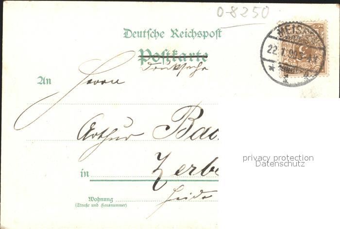 42397529 alte Postkarte Meissen Elbe Sachsen Elbbruecke Albrechtsburg Kirche Rathaus Schloss Siebeneichen Porzellan Manufaktur Litho Reichspost postalisch gelaufen Erhaltung siehe scans KatCode: 11110014280240
