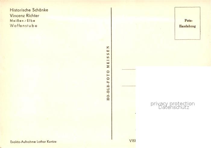 43496802 Meissen Elbe Sachsen Historische Schaenke Vincenz Richter Waffenstube postalisch nicht gelaufen Erhaltung siehe scans [FriedD77] KatCode: 11110014280240