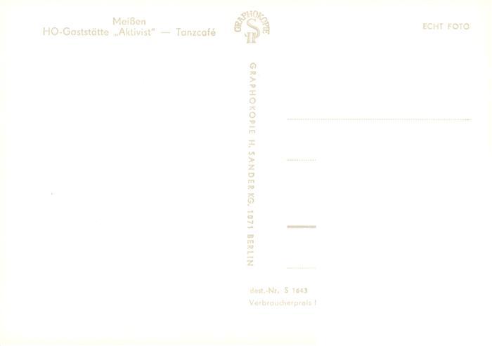 73905260 Meissen Elbe Sachsen HOG Aktivist Tanzcafe postalisch nicht gelaufen Erhaltung siehe scans [WerneD78] KatCode: 11110014280240