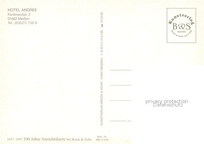 73742415 Meissen Elbe Sachsen Hotel Andree Gaestezimmer Speisesaal Schloss postalisch nicht gelaufen Erhaltung siehe scans [WerneD78] KatCode: 11110014280240