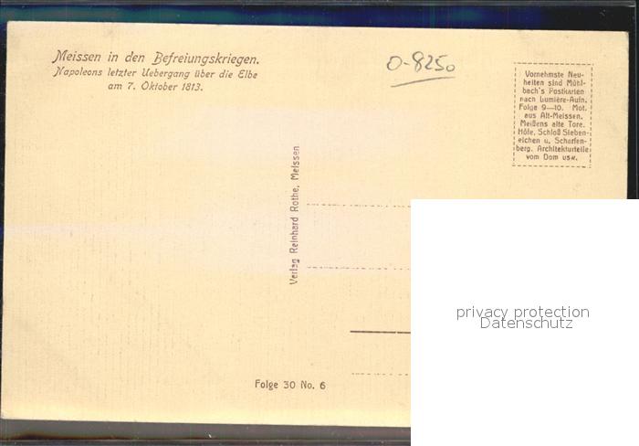 42385766 Meissen Elbe Sachsen in den Befreiungskriegen Napoleon 1813 Kuenstlerkarte postalisch nicht gelaufen Erhaltung siehe scans KatCode: 11110014280240