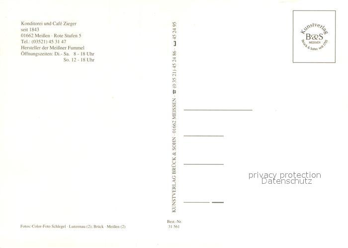 73734541 Meissen Elbe Sachsen Konditorei Cafe Zieger Meissner Fummel Spezialitaet postalisch nicht gelaufen Erhaltung siehe scans [FriedD77] KatCode: 11110014280240