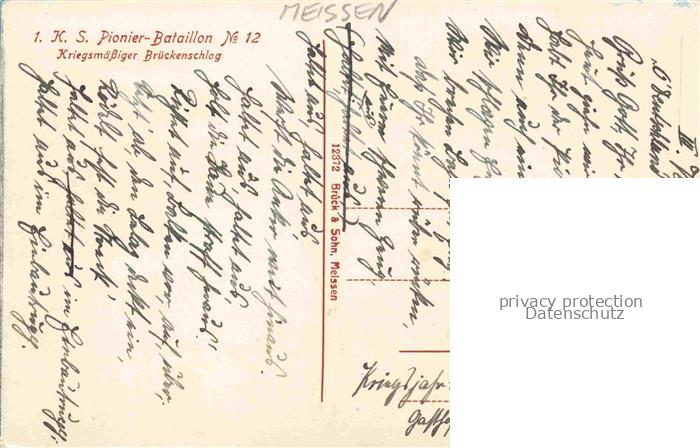 74024360 MEIssEN Elbe Sachsen KS Pionier Bataillon No 12 Kriegsmaessiger Brueckenschlag postalisch nicht gelaufen Erhaltung siehe scans [WerneD78] KatCode: 11110014280240