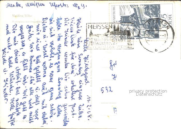 71947605 alte Postkarte Meissen Elbe Sachsen Marktplatz mit Frauenkirche postalisch gelaufen Erhaltung siehe scans KatCode: 11110014280240