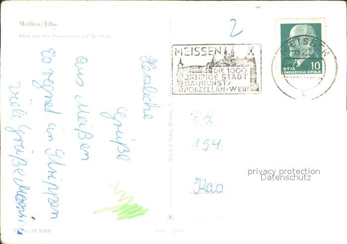 72338752 alte Postkarte Meissen Elbe Sachsen Panorama Blick von den Domtuermen Bruecken postalisch gelaufen Erhaltung siehe scans KatCode: 11110014280240
