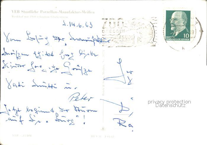 72374327 alte Postkarte Meissen Elbe Sachsen Porzellan-Manufaktur Werkhof Glockenturm postalisch gelaufen Erhaltung siehe scans KatCode: 11110014280240