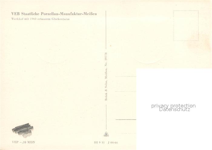 73033903 Meissen Elbe Sachsen Porzellan-Manufaktur Werkhof Glockenturm postalisch nicht gelaufen Erhaltung siehe scans [PaolaD17] KatCode: 11110014280240