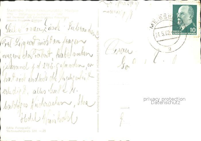 72357187 alte Postkarte Meissen Elbe Sachsen Porzellanmanufaktur postalisch gelaufen Erhaltung siehe scans KatCode: 11110014280240