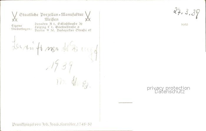 72161893 Meissen Elbe Sachsen Prunkspiegel J. Kaendler 18. Jhdt. Staatliche Porzellan Manufaktur postalisch nicht gelaufen Erhaltung siehe scans KatCode: 11110014280240